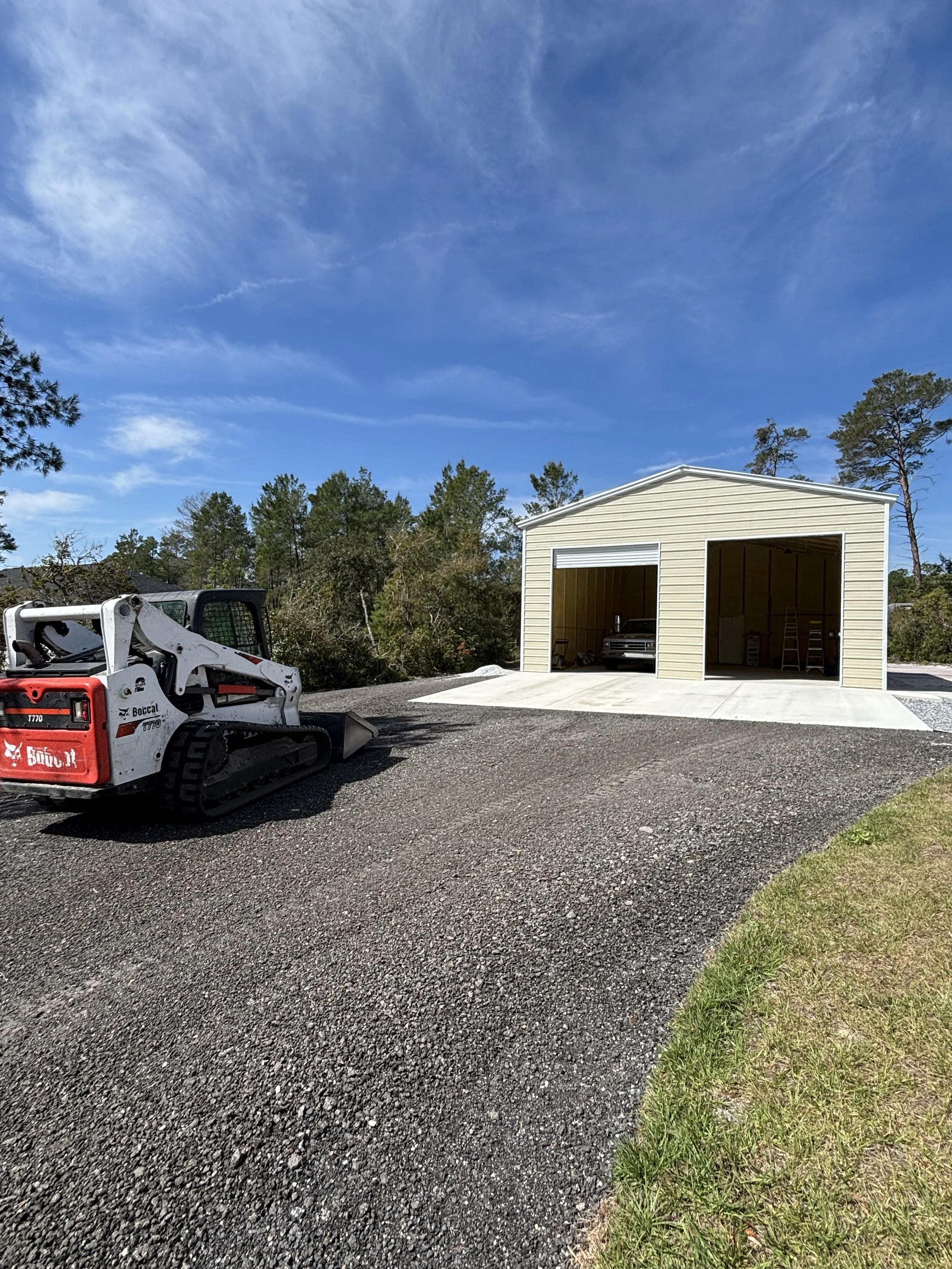 Asphalt millings make amazing driveways, parking areas, commercial entrances, etc. Asphalt millings are a very durable and cost effective alternative to traditional asphalt or concrete. Made from recycled asphalt, asphalt millings are compacted to create strong, stable surfaces that stand up well to traffic. After spreading we roll them in with our vibratory roller.