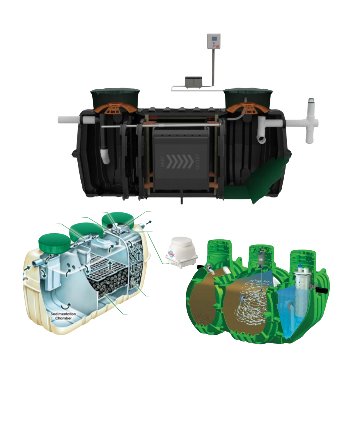 Unlike traditional systems, ATUs use oxygen and beneficial bacteria to break down waste more efficiently, producing cleaner, higher quality effluent. In an ATU system, air is continuously introduced into the treatment tank, allowing aerobic bacteria to thrive and treat wastewater faster and more thoroughly. The treated water is then safely dispersed into the drain field , helping protect groundwater, nearby waterways, and the environment. These systems require routine maintenance every 6 months. We offer maintenance agreements for lengths of 1 and 2 years.